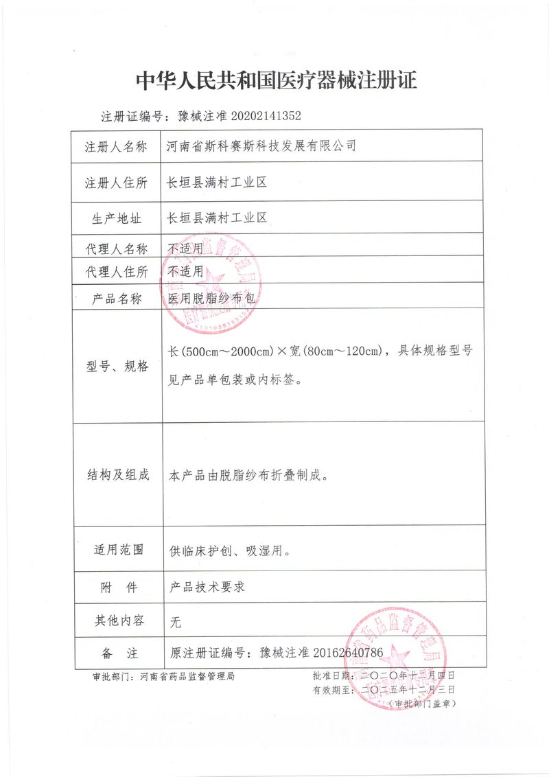 河南省斯科賽斯科技發(fā)展有限公司創(chuàng)建于 2011 年,位于“中國醫(yī)療耗材之都”- 河南省長垣縣,西臨 308 省道,南靠新菏鐵路,北依長濟高速,交通便捷,經(jīng)濟發(fā)達,環(huán)境優(yōu)美。斯科賽斯積極進入醫(yī)療健康和服務(wù)領(lǐng)域,秉承為用戶創(chuàng)造價值的理念,專注于醫(yī)用耗材解決方案的研發(fā)和運營,并為用戶提供完善的產(chǎn)品解決方案;  斯科賽斯主要生產(chǎn)醫(yī)用麻醉系列、醫(yī)用高分子系列、醫(yī)用敷料包系列、醫(yī)用無紡布系列、醫(yī)用防護系列、醫(yī)用脫脂棉系列、生物材料制品類等七大類、100 多個品種、400 多個規(guī)格的產(chǎn)品。公司占地面積約 30000 平方米,建筑面積20000 平方米,擁有 10 萬級的凈化車間總面積 10000 平方米。擁有國際先進水平的生產(chǎn)設(shè)備和檢測儀器,技術(shù)裝備精良,檢測手段完善,為醫(yī)療行業(yè)的不斷發(fā)展進步提供保障。公司順利通過 ISO9001、ISO13485 質(zhì)量管理體系認證。  斯科賽斯堅持研發(fā)高科技新產(chǎn)品,力爭在醫(yī)療器械關(guān)鍵領(lǐng)域取得技術(shù)和研發(fā)的重大突破;立足國內(nèi)和國際兩個市場,逐步實現(xiàn)管理理念、經(jīng)營機制、人力資源、技術(shù)、產(chǎn)品、市場等全方位對接,提高企業(yè)的核心競爭力;過去的歲月里,斯科賽斯砥礪前行,誠信務(wù)實,銳意進取,不斷創(chuàng)新,用自己的睿智和辛勞,以富有責(zé)任感的使命,在探索中追求,在追求中超越,致力于成為值得信賴的醫(yī)療用品生產(chǎn)企業(yè)!在未來的日子里,斯科賽斯將一如既往豪情滿懷,信心百倍,攜手并肩,執(zhí)著追求,向更高的的目標前進,鑄造新的輝煌!